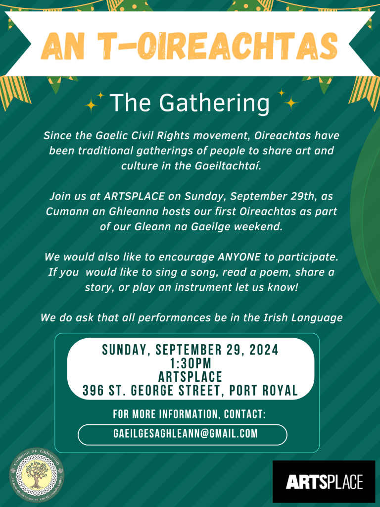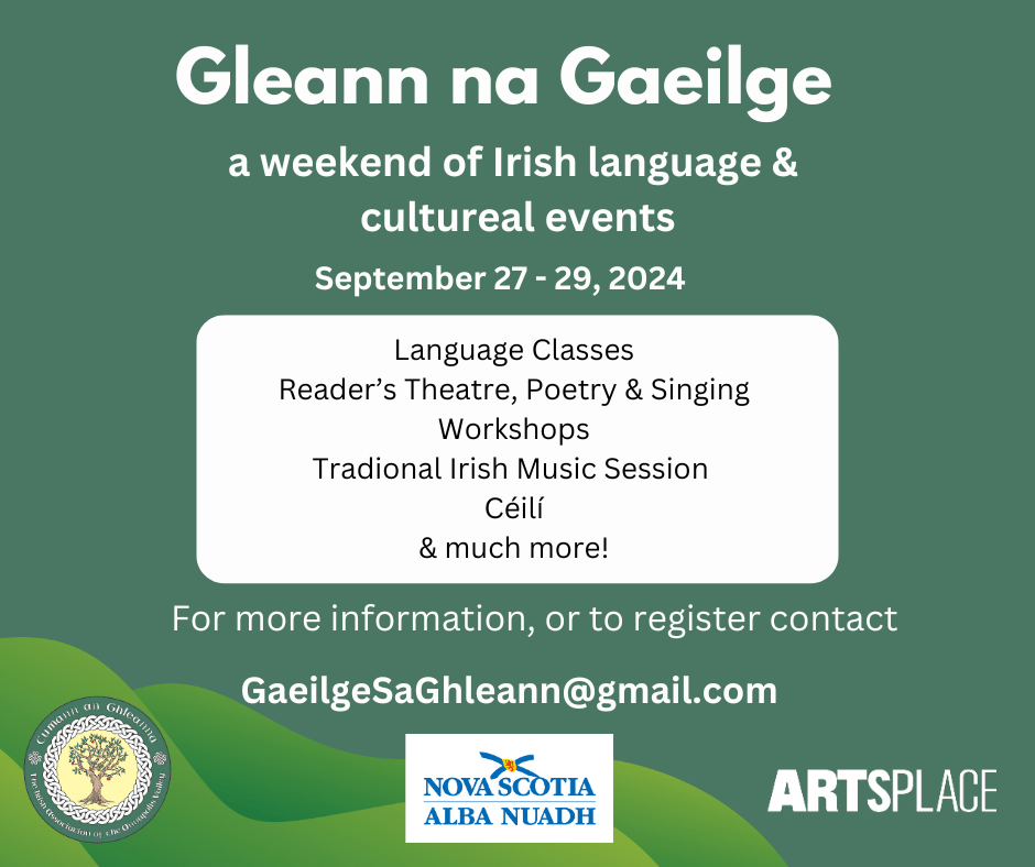 Nova Scotia Office of Gaelic Affairs and ArtsPlace in Annapolis Royal – Partnering with Cumann an Ghleanna to present Gleann na Gaeilge 2024!