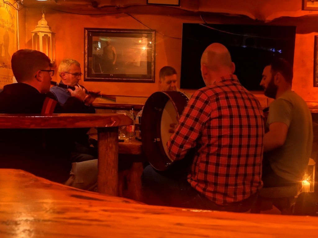 On Friday evening, I went to a session at Tí Sé in An Cheathrú Rua, in Conamara. While traditional Irish music sessions are much the same all over the world, the repertoire of tunes played varies from session to session. I’ve only been playing the fiddle for a few years but love going to play at sessions because it motivates me to play in a way that just does not happen when I play alone at home.